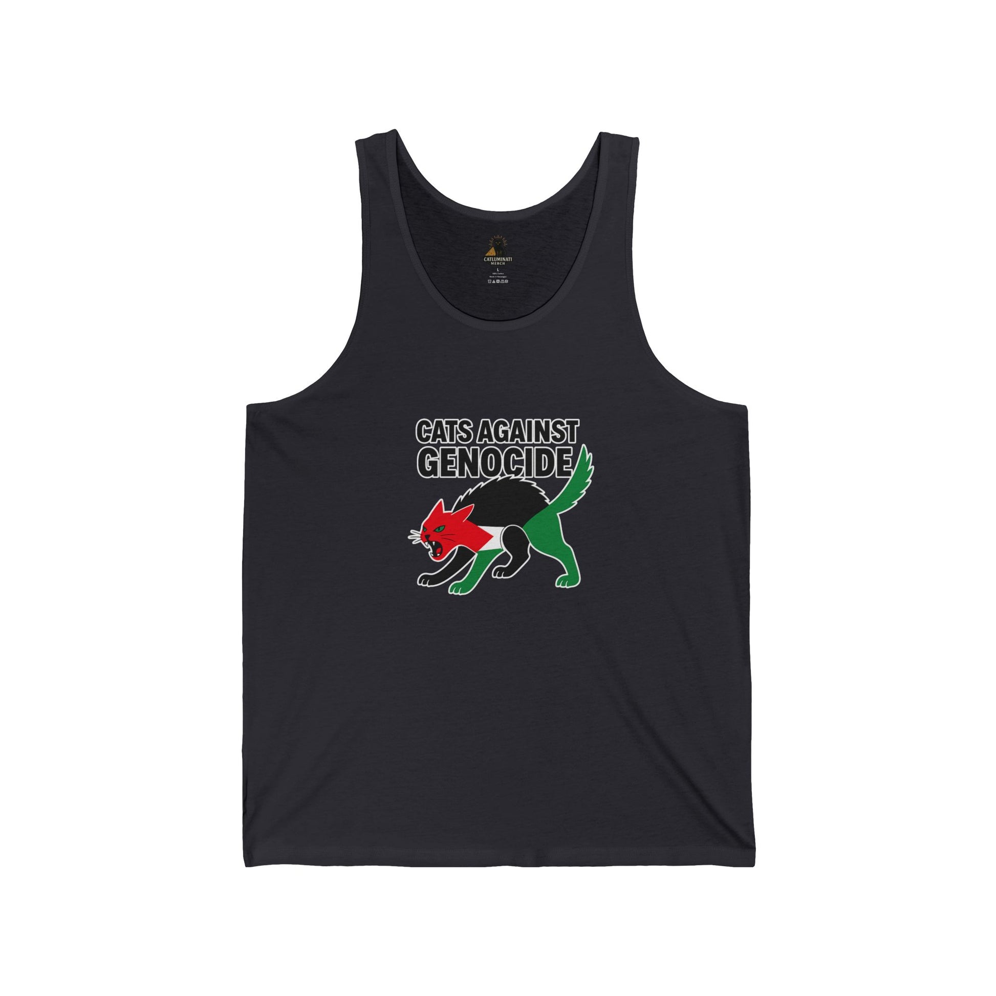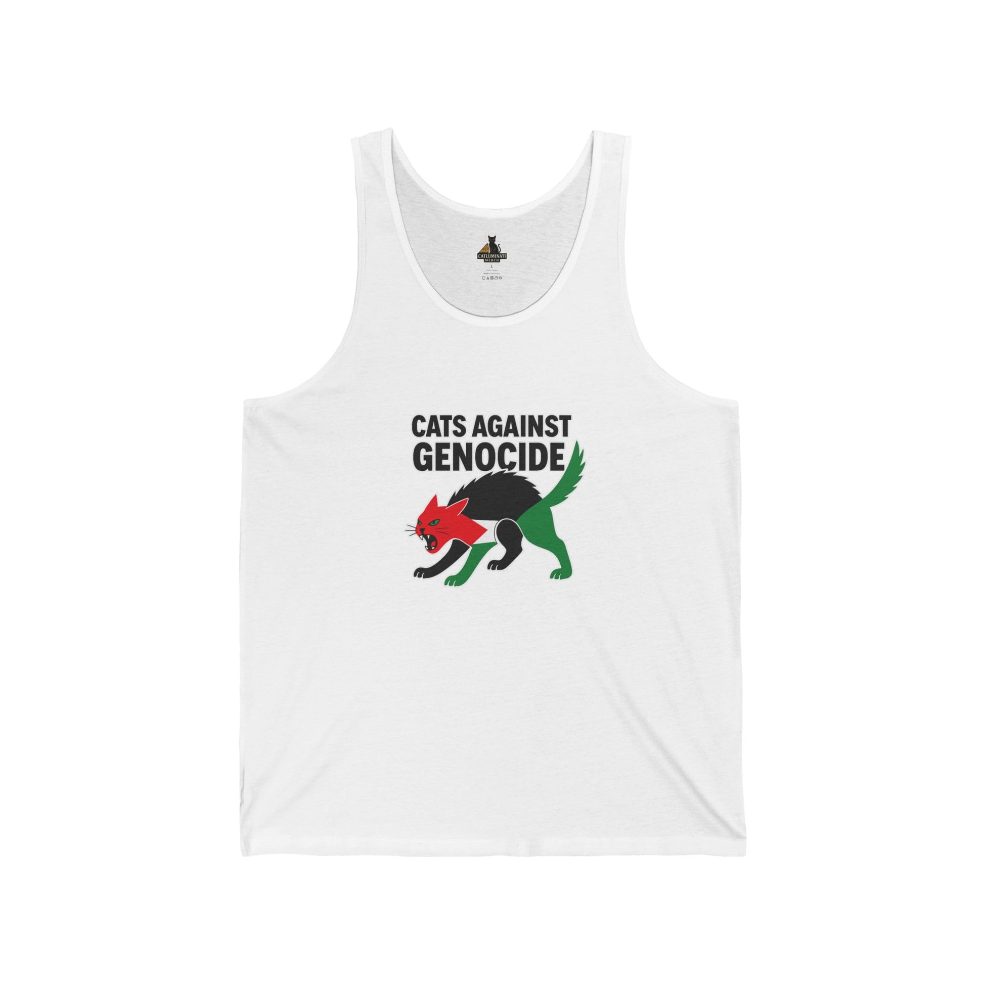 Cats Against Genocide Unisex Jersey Tank - Empowering Apparel for Animal Lovers, Activists, Casual Wear, Gift Idea, Pride Wear