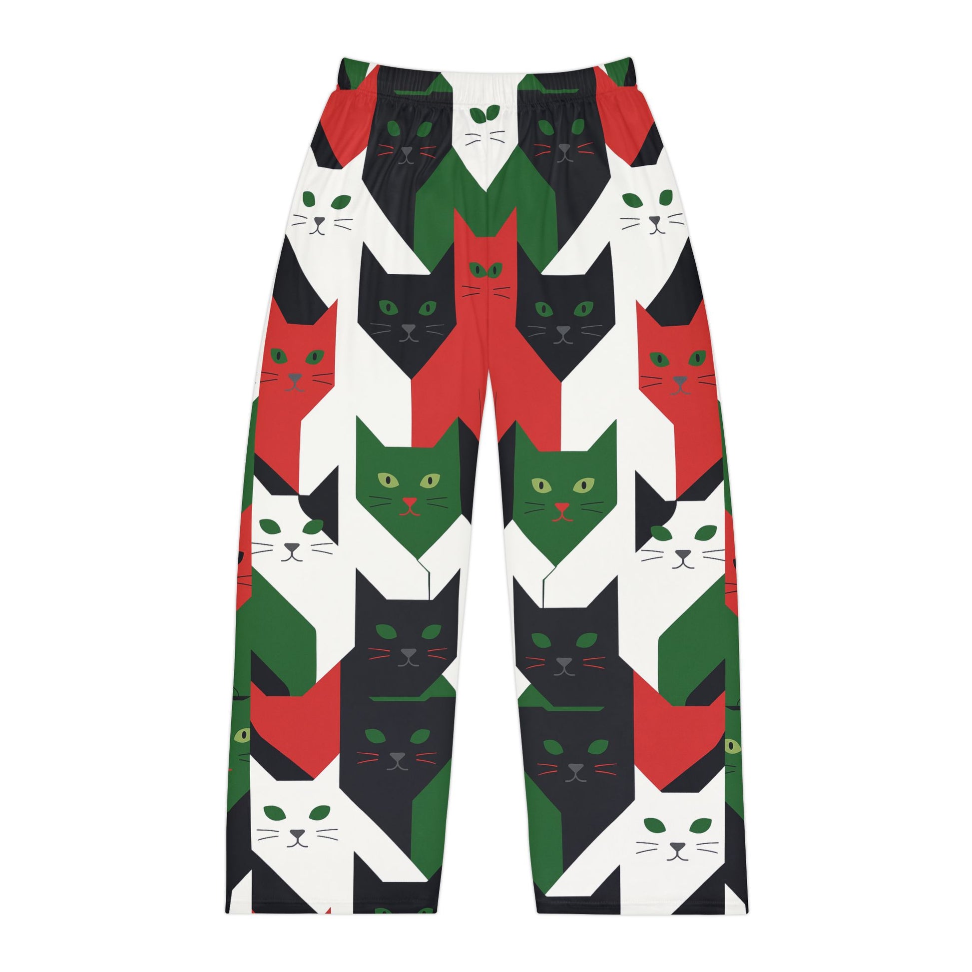 Holiday Cat Pajama Pants — Red Green Black All-Over Print