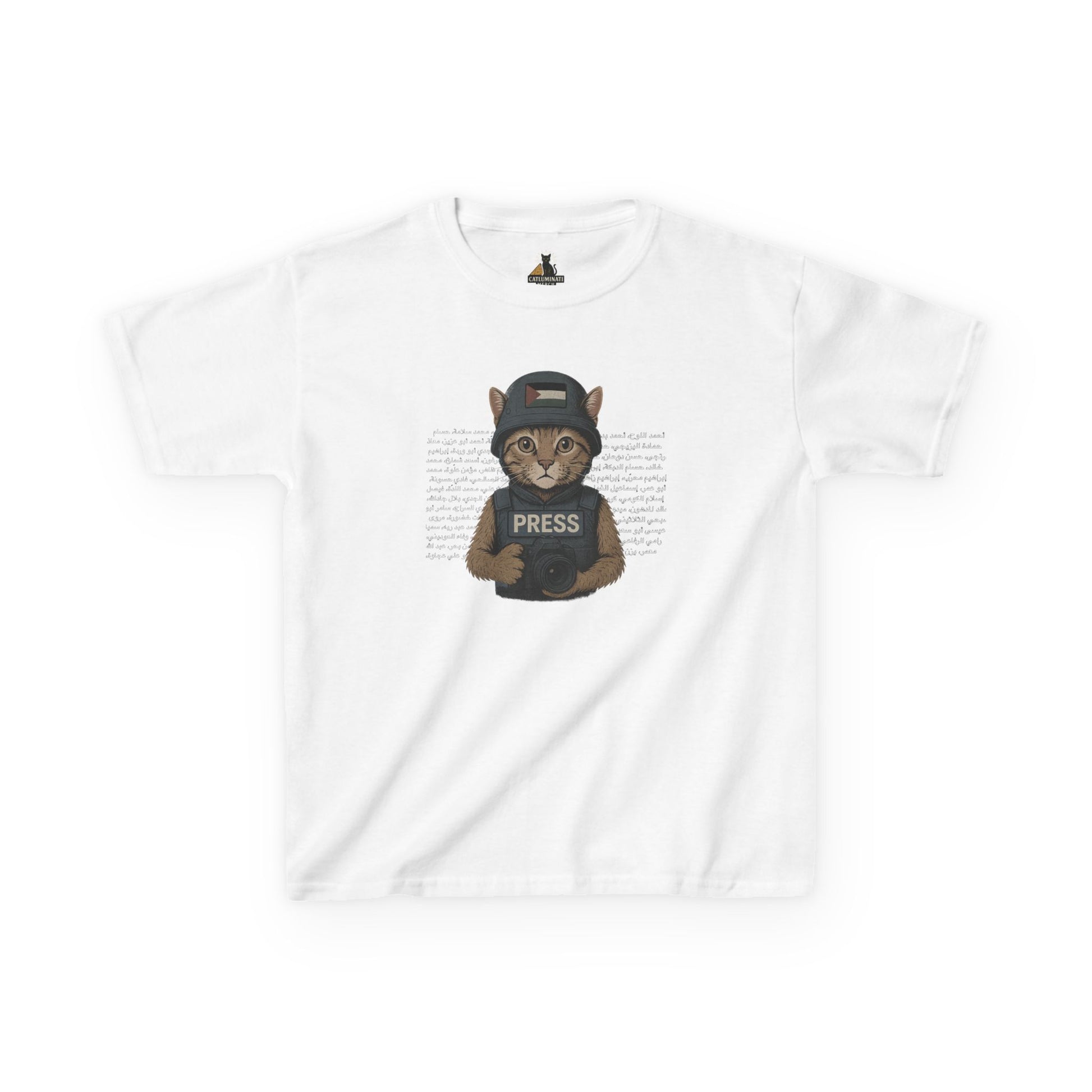 Kids Graphic Tee, Cat Press Journalist Shirt, Fun Animal Apparel, Unique Gift for Kids, Cool Fashion for Little Ones