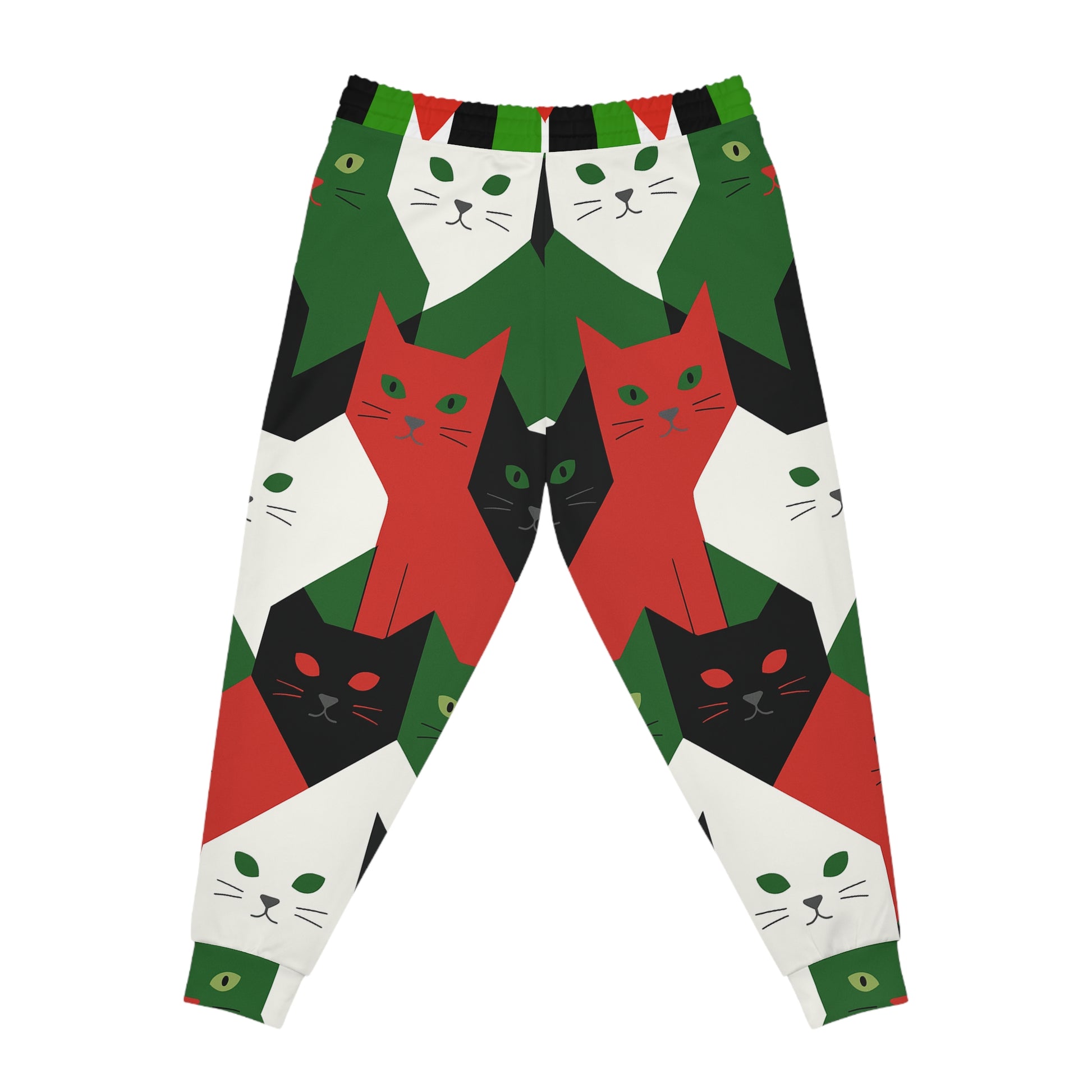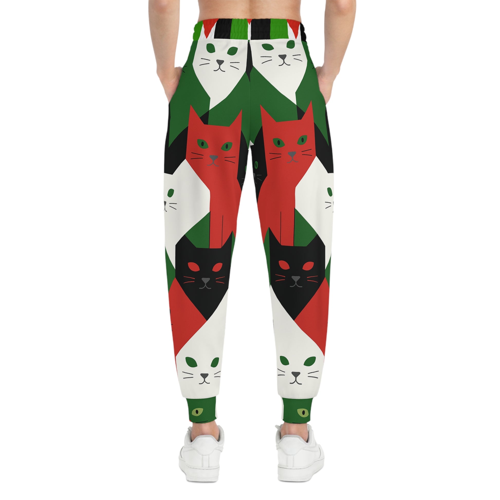Palestine Holiday Cat Print Joggers — Red, Green & Black All-Over-Print Athletic Pants