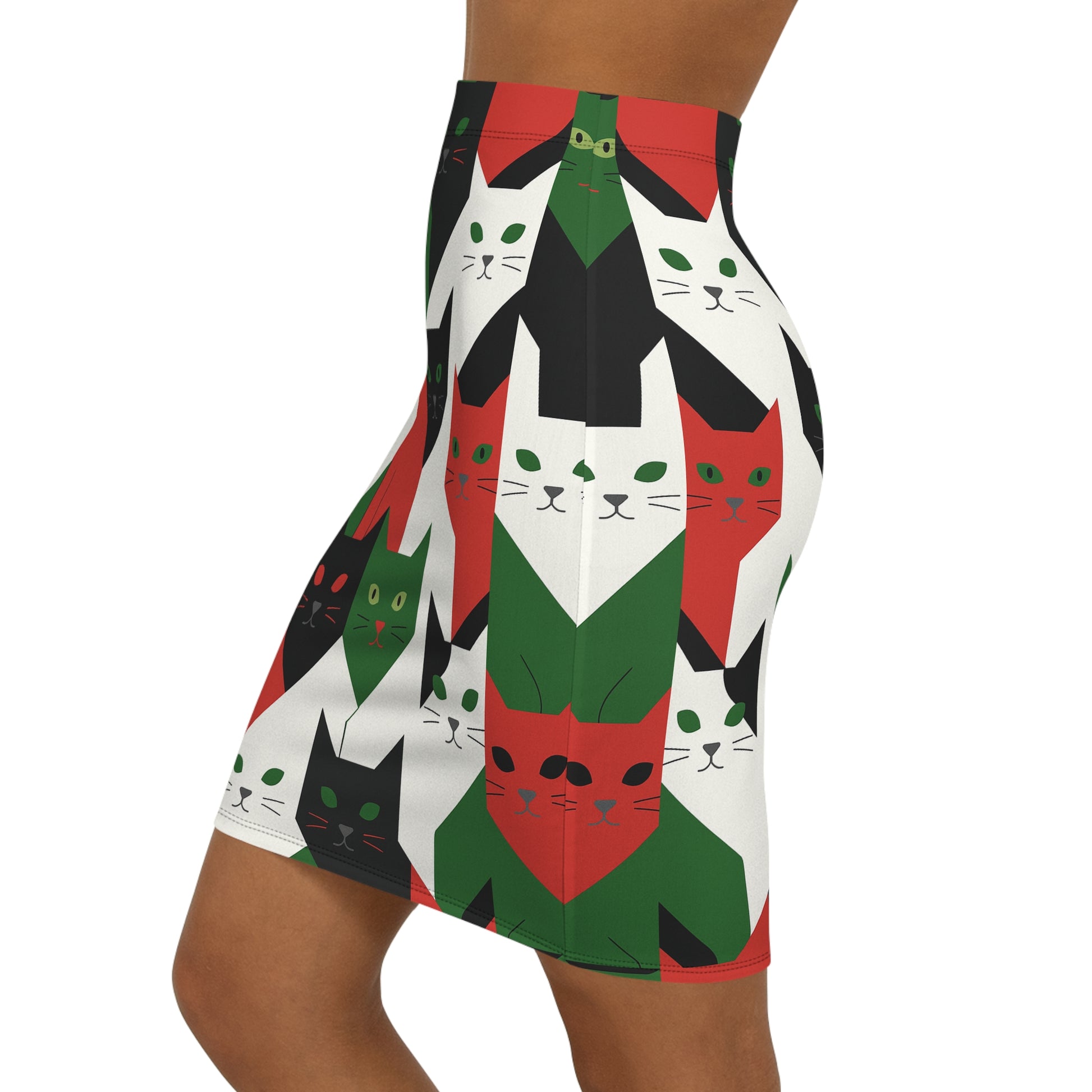 Women's Mid-Waist Cat Pencil Skirt (AOP)